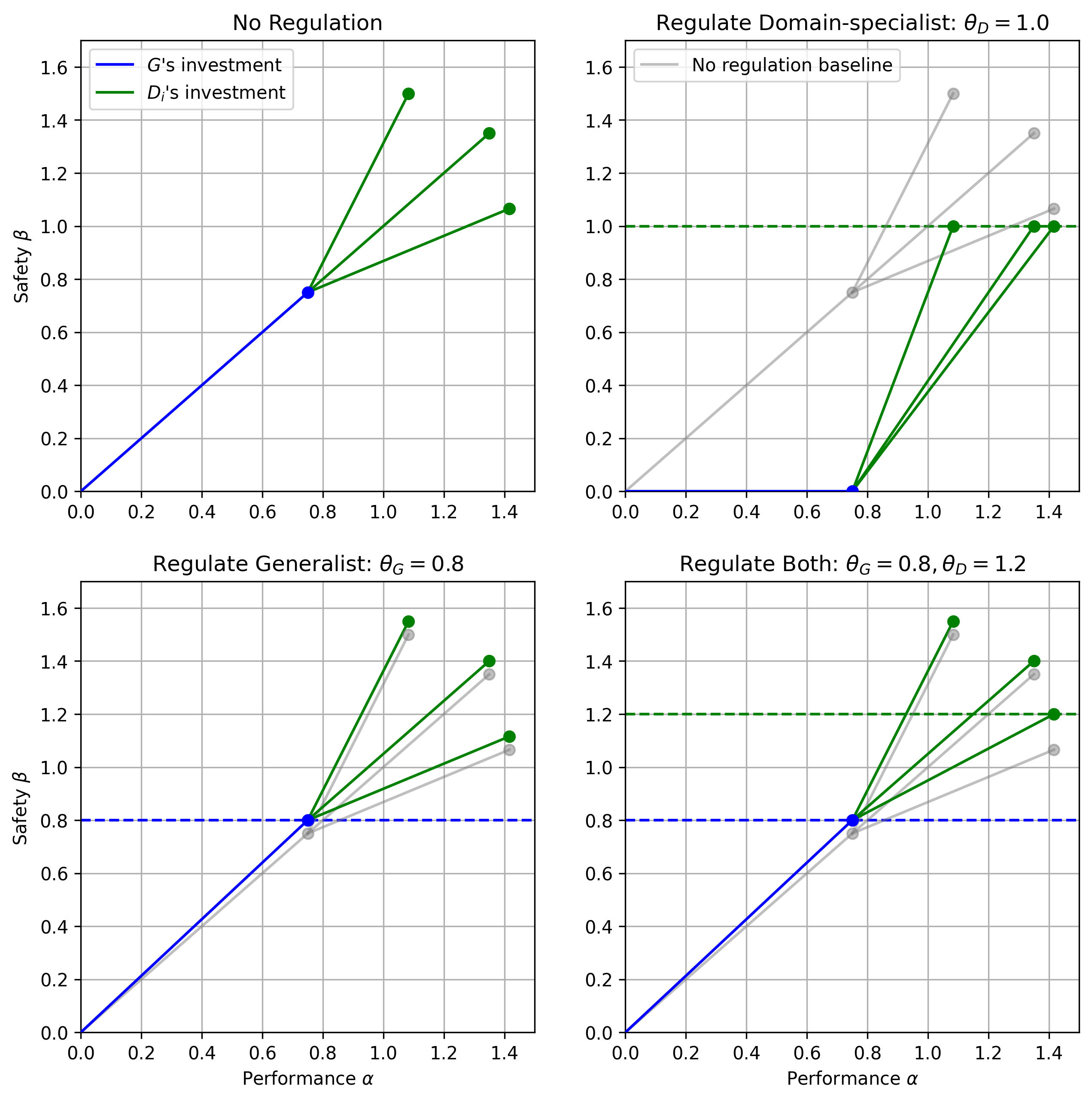 How should safety rules for AI be designed when we can’t easily observe the consequences in advance? We build a strategic model of an AI development chain, where a regulator sets minimum safety standards and penalties, and the technology trades off safety and performance. When we analyze the model, we find that weak regulation focused mainly on downstream specialists can backfire and reduce safety, while stronger, well-placed regulation can act as a commitment device that improves both safety and performance, sometimes even benefiting all parties relative to no regulation.
