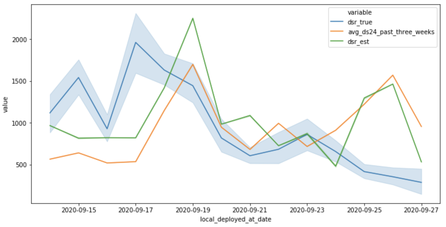 Most models at Lime use region-wide, 3-week historical averages to estimate a vehicle's revenue for the next day. We can reduce error by training an ML model with a few additional pieces of information (weather, vehicle model, seasonal trend, location, and auto-regressive terms).