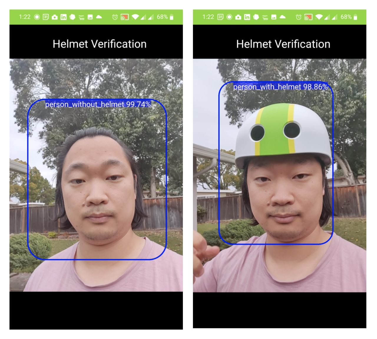 Bike, scooter and moped sharing companies' biggest challenge is rider safety in car-dominated cities. To encourage riders to wear helmets, we built a computer vision model that can detect whether a rider is wearing a helmet in real time. We can use this feature to motivate helmet-wearing through discounts, the nudge effect, or strict requirement (in certain markets). We scraped images from Google, built a Convolutional Neural Network (CNN) using transferred learning with YOLOv4, and designed and implemented the UI for the Lime app. The model's classification accuracy on a test set was 97.55%.
