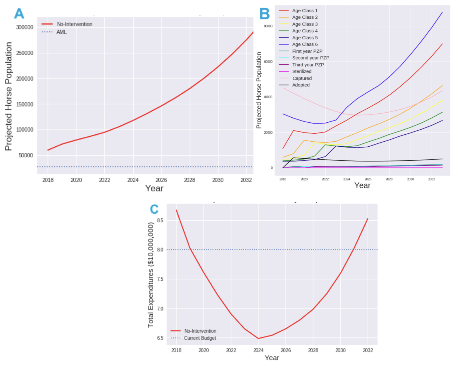 Feral horse populations are exploding, and the Bureau of Land Management refrains from culling because of its unpopularity. Instead, they gather large number of horses and keep them in barns. From a population dynamics perspective, we find that the current strategy is inadequate and simulate the impacts of a number of proposed alternatives.