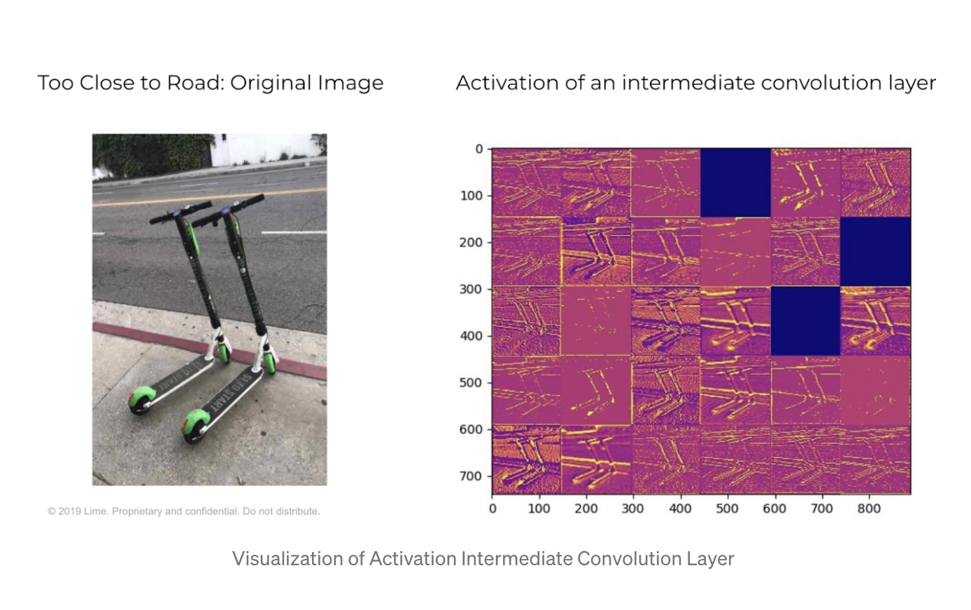 When riders finish a ride or employees deploy a fresh scooter, they take a photo of the parking job. Cities need proper vehicle parking so that scooters are not in pedestrians' way. Using our giant photo dataset, we trained and deployed a machine learning model (CNN) to identify improper parking.
